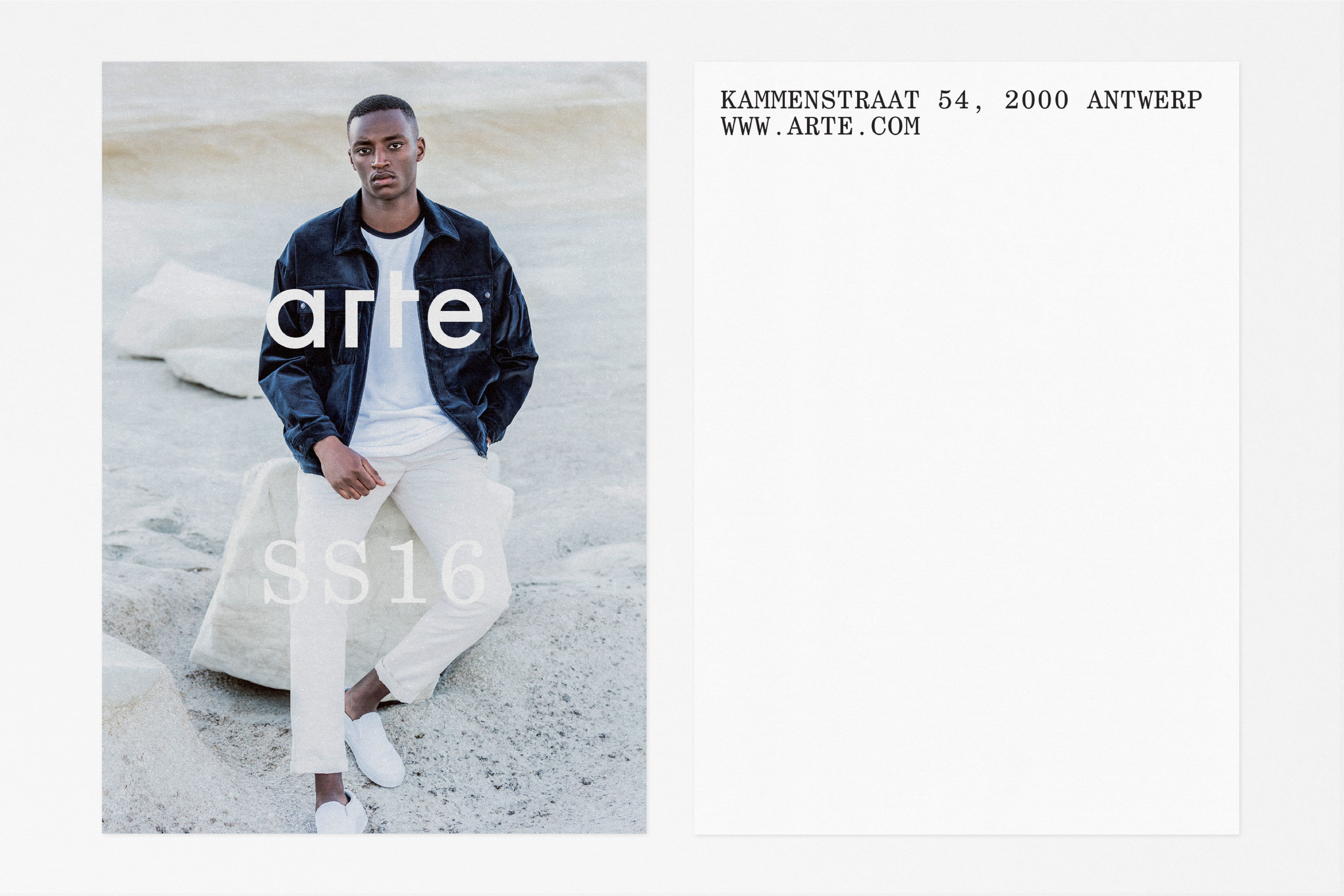 Vrints-Kolsteren was asked to create a new visual identity for the brand Arte, which was formerly called Arternative. Changing the name of the brand to Arte created a clean and recognisable mark that suited the needs of the brand. The development of the atmosphere and visual style of Arte was influenced by the city of Antwerp, keeping in mind the industrial influences of the port and the rich history of fashion that has formed Antwerp over the course of centuries. Next to creating the visual identity, Vrints-Kolsteren has an ongoing collaboration with Arte for print design and other graphic work like showrooms, invitations and so on.